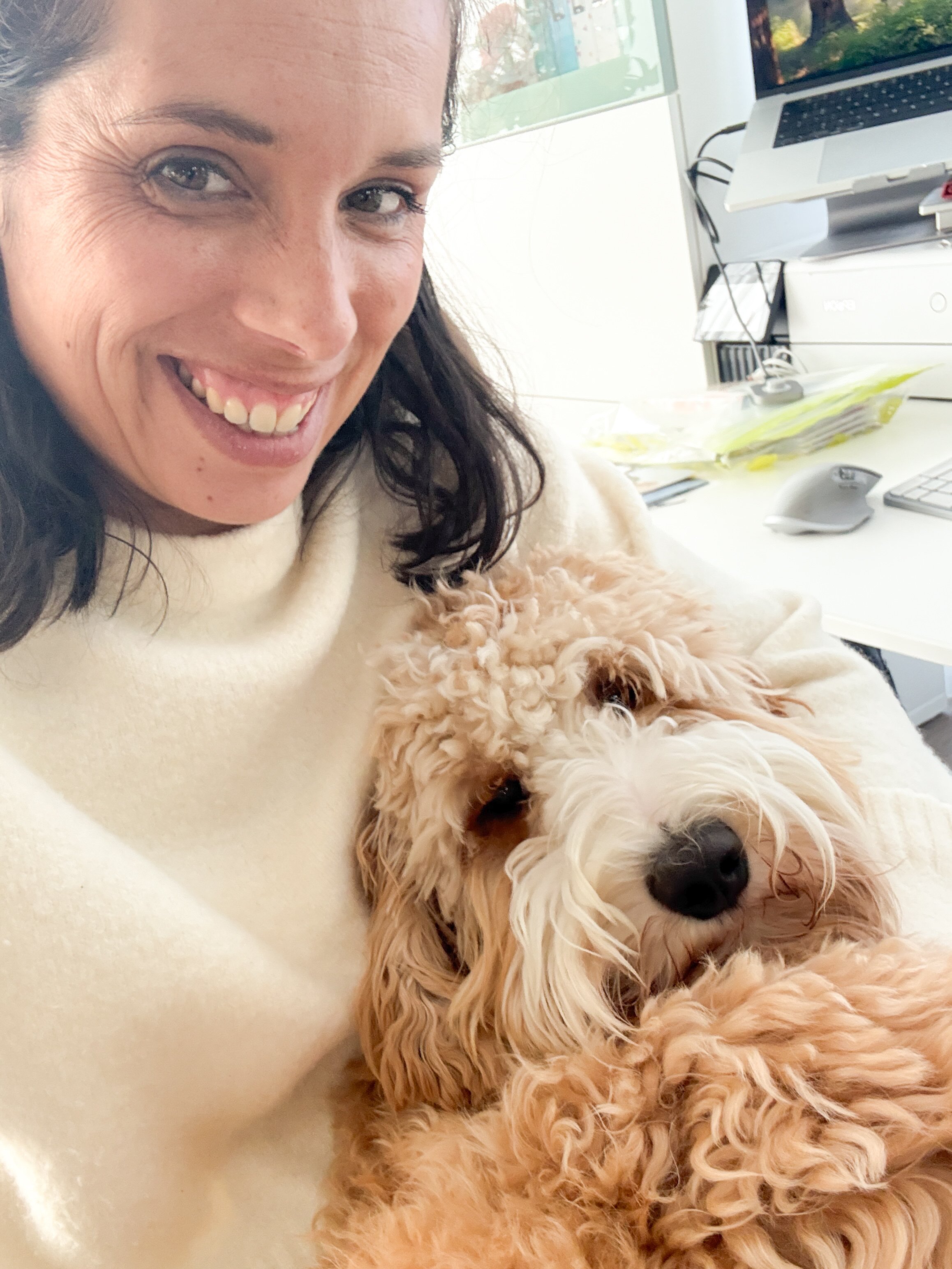 Sinds 2025 wordt ze overal vergezeld, ook in de winkel, door Mochi. Mochi houdt van knuffelen, knuffelen en vooral veel knuffelen.